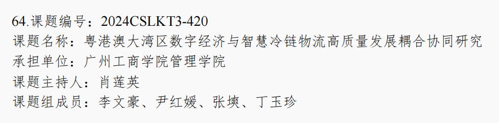 与此同时,肖莲英老师主持的课题“粤港澳大湾区数字经济与智慧冷链物流高质量发展耦合协同研究”也荣获三等奖。该课题聚焦于粤港澳大湾区这一经济热点区域,探讨了数字经济与智慧冷链物流之间的耦合协同机制,提出了促进两者高质量发展的策略建议。课题的研究成果对于提升大湾区物流效率、推动产业升级具有重要意义。