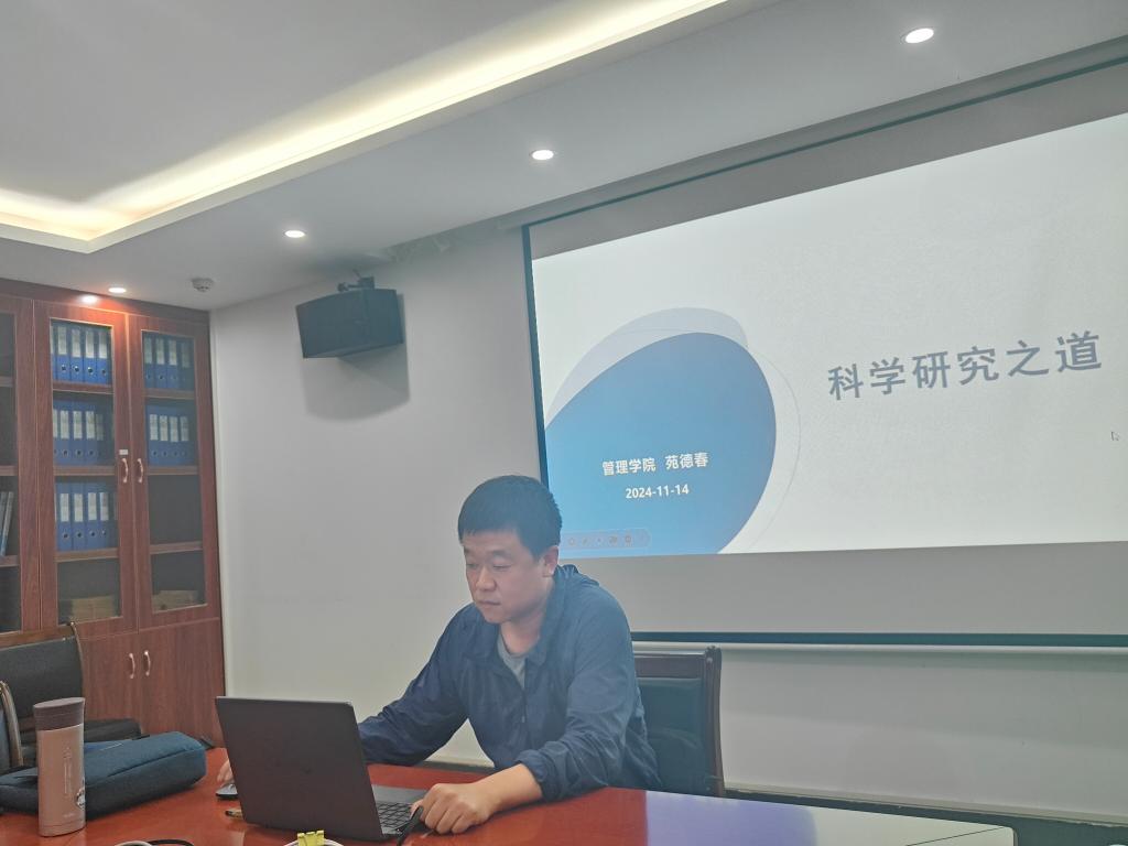 活动由苑德春博士主持。首先,邓万里博士,以“实证论文中常见错误及主流的论文框架:基于CSSCI论文的解读”为题,总结了学术论文写作的一般框架,基于此框架分析解读了三篇具有代表性的核心期刊论文,并从期刊编辑者视角列举了论文中常见的错误,对大家开展学术论文写作具有重要指导作用。接下来,苑德春博士以“科学研究之道”为主题,分别从“科学问道”、“突破维度”、“道法自然”三个视角分享了科学研究工作中的个人思考,并将道家思想融入到科研方法和科学研究的一般程序中,拓宽了参会者的学术视野,启发了大家的科研思维。