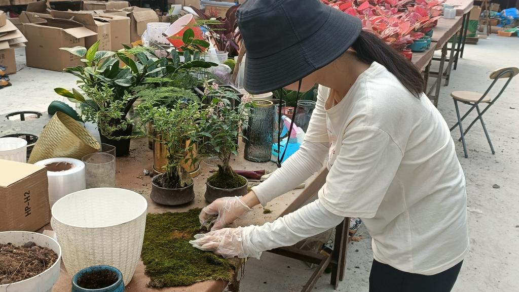 了解完生产模式之后,企业老师亲手示范盆景选盆和制土技巧,让学生亲自体验了微观盆景的栽种方法,学生从中体验到选盆制土—栽种方法—定期修剪—艺术设计的盆景制作过程,并且自己栽种了一个小盆景。实践过程中,学生们懂得了盆景种植养护的一些经验,了解到盆景从种植到艺术设计的周期,并表示对微盆景的未来发展有了更深一步的了解。在这个过程,学生利用自己所学的相关专业知识结合具体的实践,对自己所学到的理论知识运用到实践,对本专业的知识也有更深入的了解。