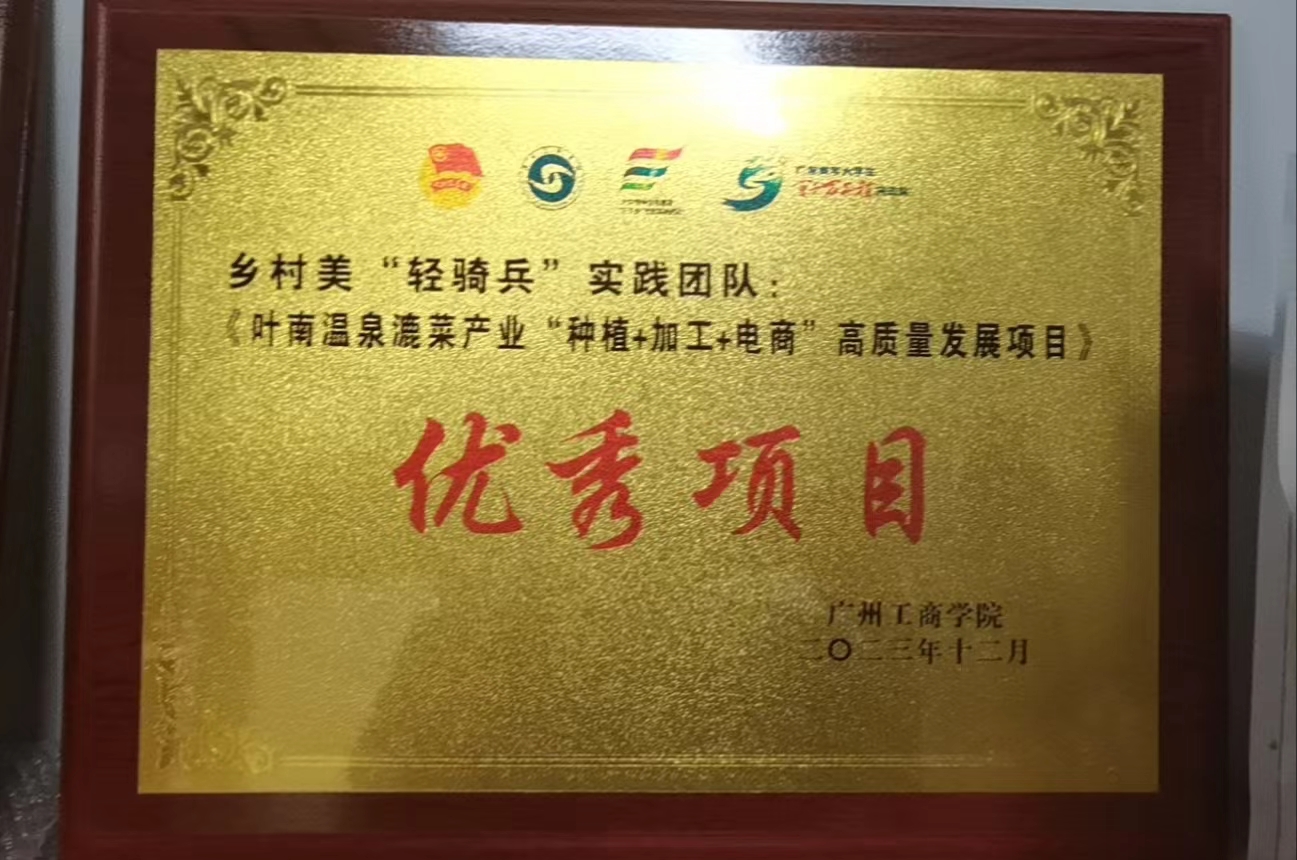 陈伟副教授带领的乡村美“轻骑兵”实践团队所结对项目——叶南温泉漉菜产业“种植+加工+电商”高质量发展项目在暑期社会实践表彰大会荣获优秀项目奖 (荣誉证书) 同时,陈伟副教授在2023年工作中,积极努力,成绩优...