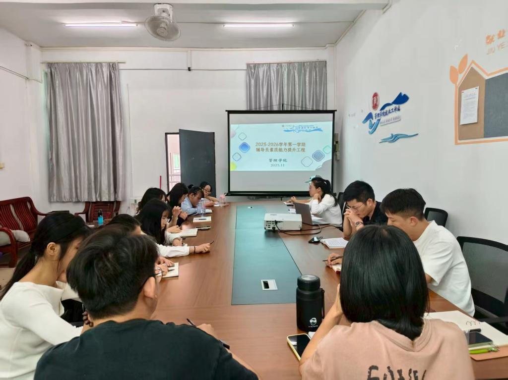 【本网讯】为深入落实立德树人根本任务,持续推进辅导员队伍专业化、职业化建设,提升学工队伍整体育人水平,2025年11月17日下午,管理学院在学院就业工作站开展了了以“业务能力与实务操作”为主题的辅导员素质能力提升专题讲座。学院党委副书记、副院长赵小锋出席会议,管理学院学工队伍全体辅导员参加学习。讲座由学工办主任欧荣林主讲。学工办主任欧荣林围绕“辅导员核心业务能力提升与实务操作精细化”作主题发言。他结合...