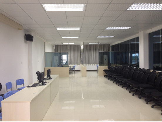 行为观察与商务谈判室A306该实训室始建于2016年9月,主要特色在于有两个可以进行单独会谈的会议室,主要承担《招聘管理》、《商务谈判》等课程的实训,可以完成无领导小组讨论、结构化面试等面试模拟及绩效沟通、薪酬沟通等实训项目
