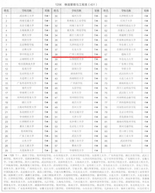 自2018年起,在中国科教评价网发布的《中国大学及学科专业评价报告》中,物流管理专业在参评的全国高校物流管理与工程类专业中均排名靠前。2021-2024年度,本专业在参评的全国455个高校物流管理与工程类专业排名中连续三年广东省民办本科高校中排名第一。且连续四年被评为五星级专业。