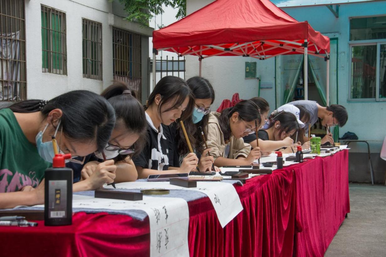 【本网讯】翰墨丹青歌盛世,浓墨重彩写华章。为响应学校“第六届宿舍文化节”的号召,推进“一站式”学生社区综合管理模式建设,创新“一站式”学生社区党建和思想政治工作模式,落实党建工作下沉学生宿舍,打造鲜明特色党团社区。2023年5月10日下午,我院在学生公寓8栋举办工学院学生社区系列活动之书金句,悟精神—党的二十大报告金句书法展活动。