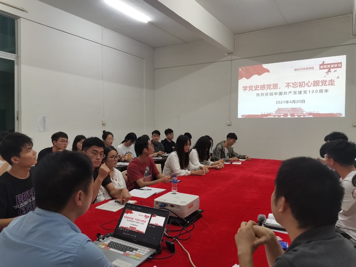 为庆祝中国共产党成立100周年,了解党的百年征程,学习党的奋斗精神,工学院学生第五党支部于2021年4月20日在第一教学楼D206召开了党史学习教育主题大会。出席本次会议的有工学院学生第五党支部书记钟伟同志、学生第五党支部组织委员邵中宝同志、学生第五党支部宣传委员张娥同志、辅导员黄宝玲同志和吴玉丽同志以及支部正式党员、预备党员。本次大会由工学院学生第五党支部组织委员邵中宝同志主持。