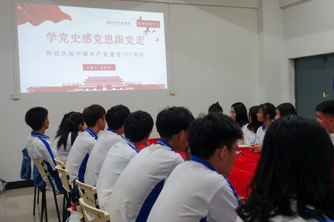为庆祝中国共产党成立100周年,学习中国共产党光辉历史,不忘初心、牢记使命。工学院学生第二党支部于2021年4月16日在一教D206展开党史学习教育大会。出席本次大会的有工学院学生第二党支部书记梁家华同志、学生第二党支部组织委员宋珺同志、学生第二党支部宣传委员马露露同志、辅导员韦梓珩同志以及支部正式党员、预备党员、发展对象和入党积极分子。本次党史学习教育大会由梁家华同志主持。