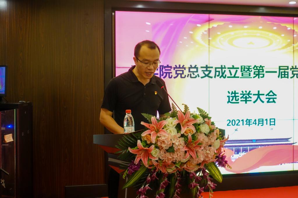 2021年4月1日下午14:30,工学院于三水校区国际学术交流中心3号楼第1会议室召开工学院党总支成立暨第一届党总支委员会选举大会。本次大会应参会党员人数225名,正式党员156名;实到党员人数182名,正式党员128名,符合大会召开要求。本次大会还邀请学校党委书记张振超同志出席,工学院副院长罗俊同志主持会议。