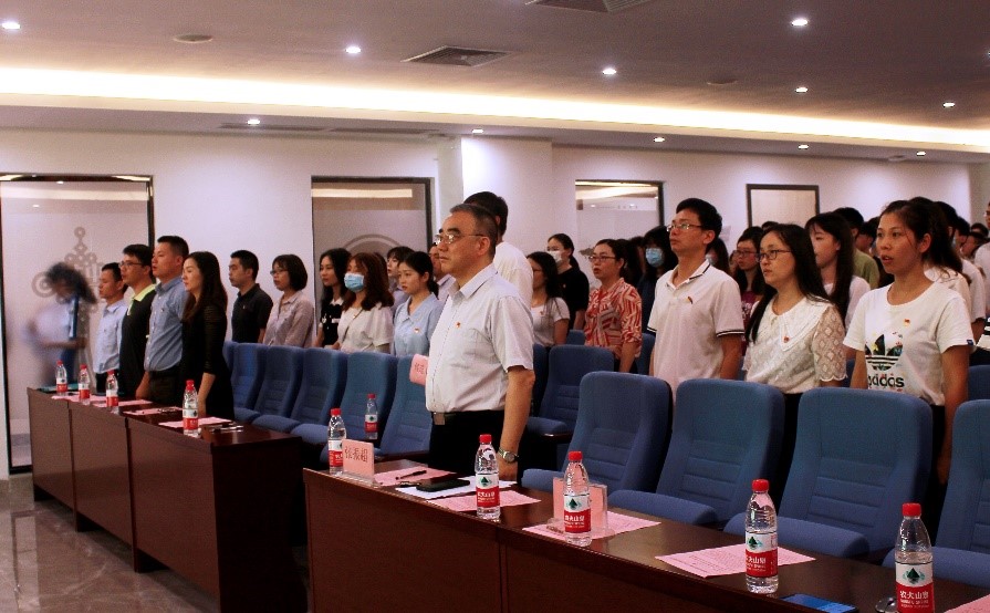 罗俊同志向到场同志介绍参会嘉宾后,宣布全体起立,奏唱国歌,大会正式开始。