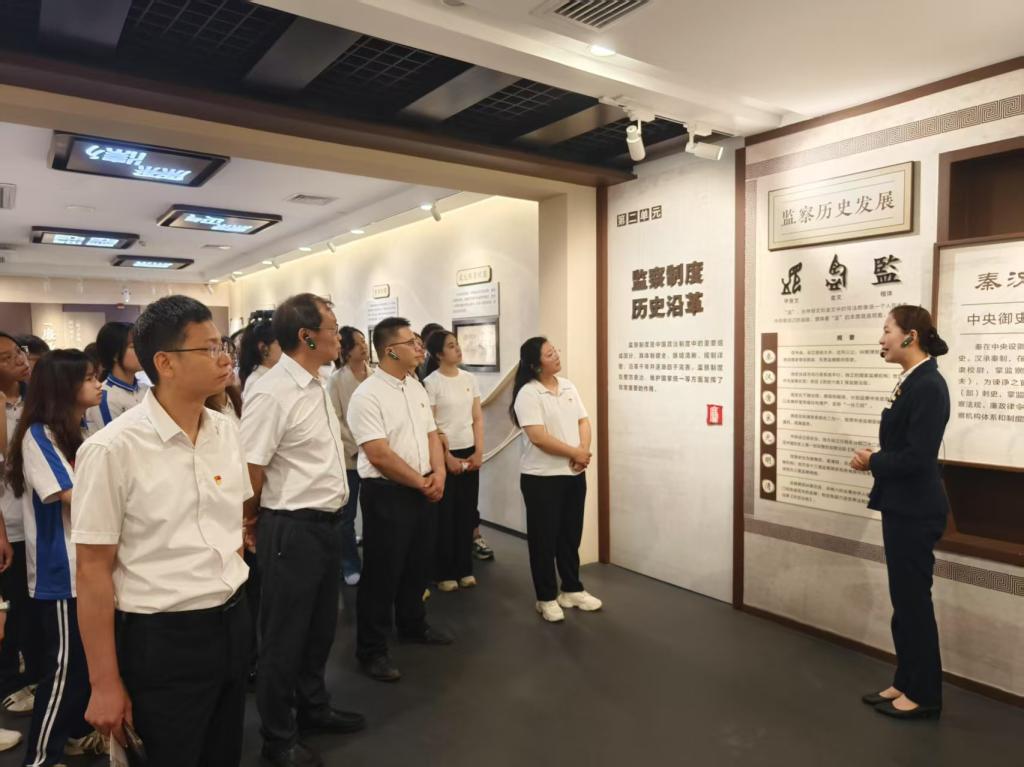 在庄严肃穆的纪法教育基地,全体师生在基地讲解员的带领下,系统参观了“从严治党 庄严承诺”“崇规尚廉 渊源流长”“自我革命 砥砺前行”“肃贪清污 警钟长鸣”“清风正气 永葆本色”五大主题展厅和“三省”长廊。通过珍贵历史文献、典型案例剖析和数字化展陈手段,全景式回顾了党的十八大以来,以习近平同志为核心的党中央坚持全面从严治党取得的历史性成就。一件件发人深省的违纪违法案例、一帧帧触及灵魂的忏悔画面,让全体参观人员深刻认识到“纪律规矩既是紧箍咒更是护身符”的政治深意。