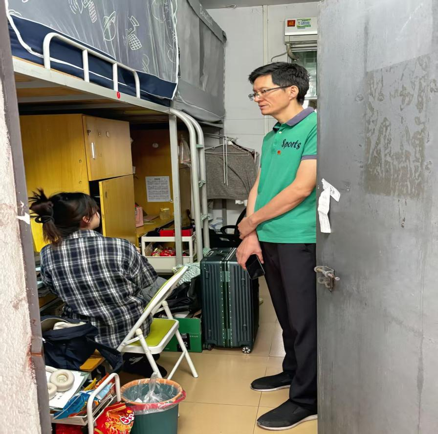接着,教师党员在胡垂立副院长的统筹下逐间走访,开展宿舍安全排查与卫生环境优化指导,重点检查电路使用规范、是否存在私拉电线及大功率电器违规使用情况,仔细核对每间宿舍及公共区域消防设施,从源头上杜绝安全隐患。