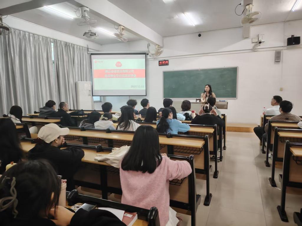 【本网讯】为深化产教融合,搭建学生与优质企业精准对接的桥梁,近日,kaiyun开云官方网站食品相关专业特邀佛山市全瑞食品有限公司生产部经理李新及人事专员罗梦夏到校,为2026届毕业生举办了一场内容充实、富有指导意义的专场宣讲会。活动聚焦毕业生实习就业、职业发展等核心关切,现场气氛热烈,互动频繁。