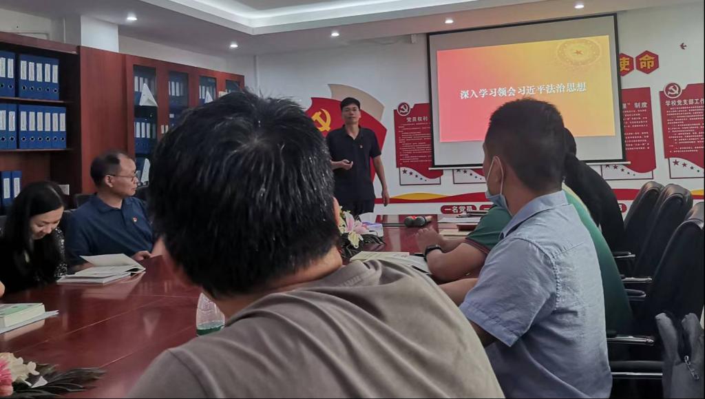 最后,由领学人周杰龙同志带领深入学习领会习近平法治思想主题。周杰龙同志指出,习近平法治思想是马克思主义法治理论中国化的最新成果,是习近平新时代中国特色社会主义思想的重要组成部分,是全面依法治国的根本遵循和行动指南。接着在洪晓彬同志、范宝珠同志、周晶同志的发言中提到,习近平法治思想是马克思主义法治思想中国化的最新成果,在习近平法治思想中,马克思主义法治思想的科学性和真理性得到了充分释放,人民性和实践性得到了充分贯彻,开放性和时代性得到了充分彰显。