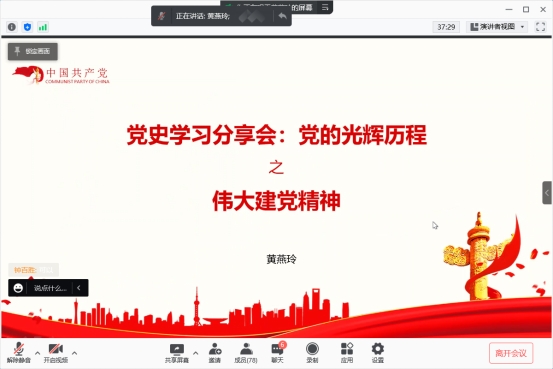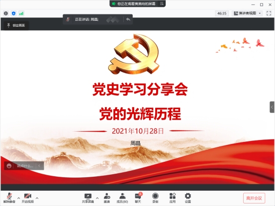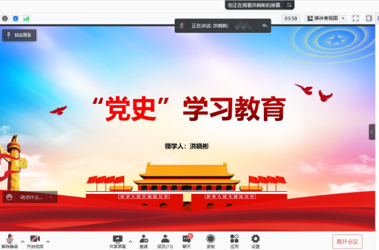 【本网讯】为加强各位党员和预备党员对党史的学习,了解党史学习教育的重大意义。2021年10月28日晚,工学院教工第二党支部联合工作室成员采用腾讯会议开展线上党史学习教育。参与本次学习的是工学院教工第一党支部、教工第二党支部各位党员,学生第三党支部各位学生党员、预备党员和广东省高校“双带头人”教师党支部书记洪晓彬工作室成员,本次会议由教工第二党支部书记洪晓彬同志主持。