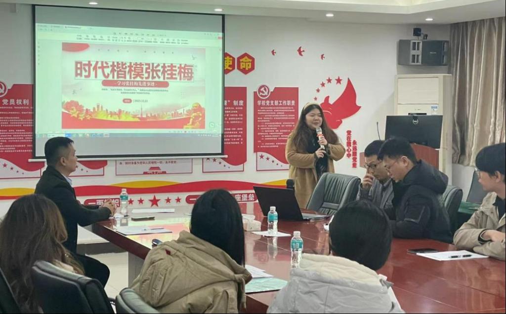 接下来,宣传委员刘怡伶老师主持的党课学习环节同样吸引了师生们极大的兴趣。大家共同学习了张桂梅“燃灯校长”的感人事迹,观看了张桂梅校长事迹纪录片,并就她无私奉献、孜孜以求的教育者光辉形象进行了深入讨论。通过刘怡伶老师的引导,与会人员体会到张桂梅校长不畏艰辛、勇于担当的精神风貌,将其作为自己今后的行动指南。
