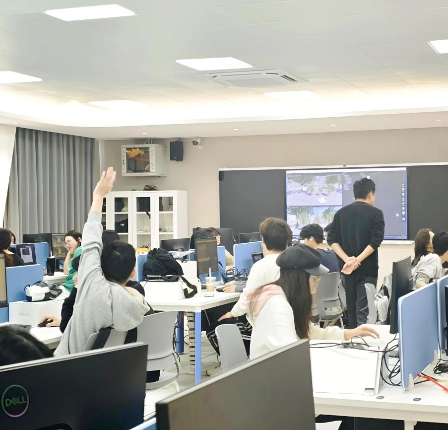 在热烈的交流互动环节,同学们结合实训体验与个人思考,就虚拟现实技术的行业应用前景、核心技术门槛、职业发展路径等话题踊跃提问。唐老师以其丰富的项目经验和行业视野,耐心细致地一一解答,并分享了其对未来虚拟现实技术发展趋势的独到见解。他认为,虚拟现实技术正从概念走向大规模商业应用,未来将在教育、医疗、工业维修、文旅等领域深度融合,创造不可估量的价值,并鼓励同学们夯实基础、敢于创新,成为推动这一进程的中坚力量。