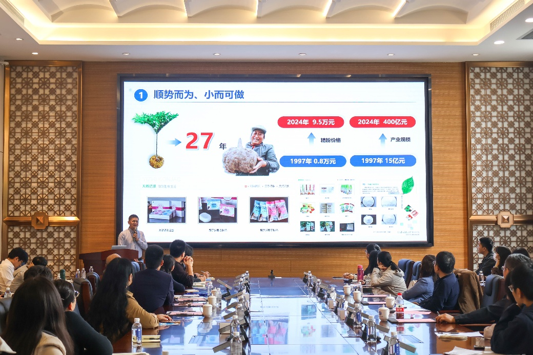 华南理工大学扶雄教授围绕《甘蔗多酚(甘蔗糖蜜提取物)降血糖机理及低升糖健康食品开发》展为题,结合大量数据与具体实例分析糖尿病与食糖的关系,进而深入解析了甘蔗多酚降血糖的作用机理,分享了其在低升糖健康食品研发中的实践经验。扶雄教授分享了从活性物质挖掘、作用机制解析到产品创制的全链条研究成果,体现了食品营养与健康干预的深度融合,为功能性食品研发与产业升级提供了宝贵经验。