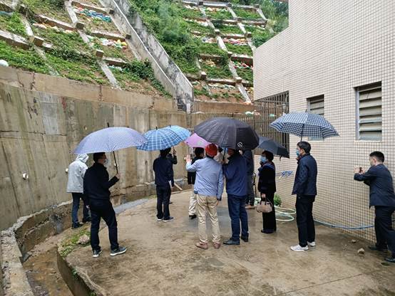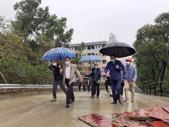 4月5日,花都区委书记、狮岭镇委书记、镇长及镇应急组等领导,到我院北区学生宿舍四号楼、七号楼旁的山体情况进行检查。黄书记指出,为确保安全,需要密切留意山体情况,要求学院做好防御工作,同时也要求镇政府有关部门关注学院相关的信息上报反馈,对学院的总体评价较好。