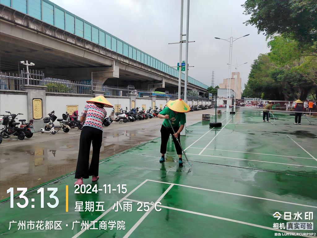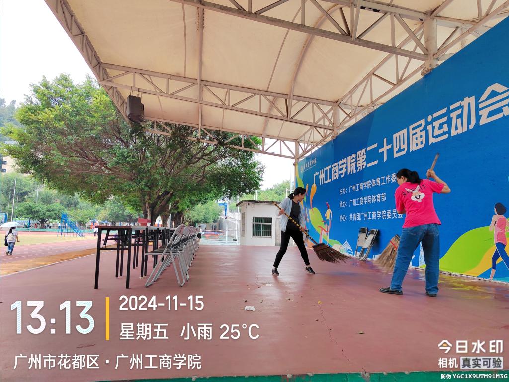 运动会进行前夕,后勤处组织清洁团队对各运动场地、看台及体育场馆周边区域进行了深度清扫。在赛事进行期间,进一步加强了环境卫生的动态维护。安排专人在比赛场地和观众区域巡回保洁,及时清理场地上的杂物、垃圾,使整个运动场地在人员高度密集的情况下仍能保持干净整洁。