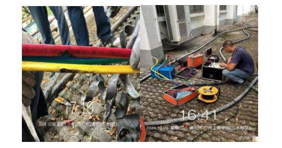 为进一步查找跳闸原因,10月9日上午,后勤处随即与维保单位将电缆取出,进行电缆排查,因故障点不明显,现有设备无法检测。同时,接通临时电源,确保学生活动中心一卡通设备能正常充值。
