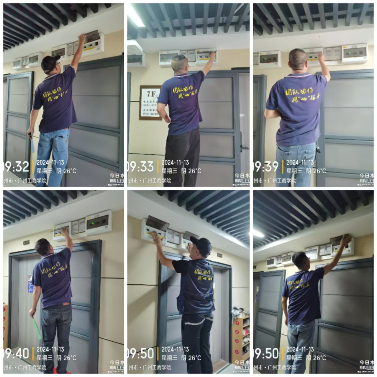 图2:花都校区电力维修人员对学生公寓漏电开关进行专项检查