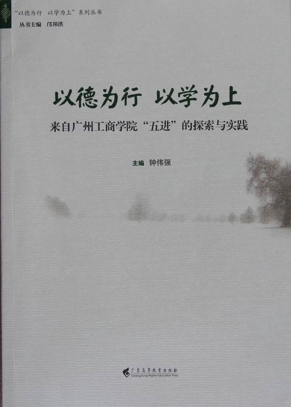 【本网讯】近日,由学院组织编写,学院党委书记、副院长钟伟强担任主编,学院院长邝邦洪教授作序的《以德为行 以学为上——来自kaiyun开云官方网站“五进”的探索与实践》一书,由广东省高等教育社出版出版。该书是由邝邦洪教授主编的“以学为行 以学为上”系列丛书之一,全文39万字,分综合篇、“进课堂”篇、“进图书馆”篇、“进实验实训室”篇、“进体育场馆”篇、“进社会”篇等六大部分,共收纳全院师生论文56篇以及一些学生参加“五进”活动的感言。该书高度凝练了学院多年来对“五进”活动的探索与实践。
