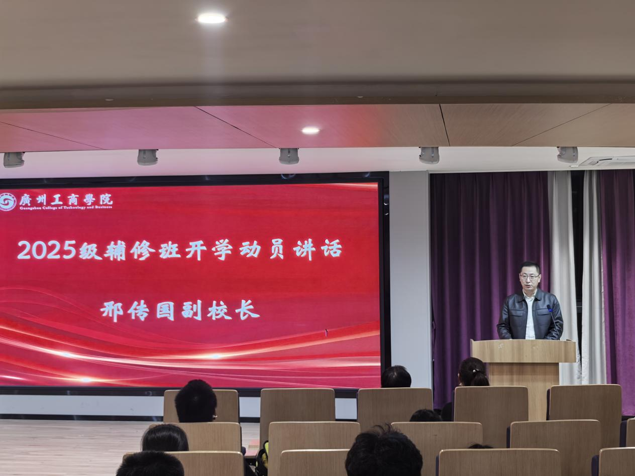 11月14日晚,新学期辅修班开班仪式暨“开学第一课”隆重举行。学校副校长邢传国亲临现场并作题为“乘辅修之翼,绘精彩人生”的开班动员讲话。邢传国首先对选择辅修、追求卓越的同学们表示了热烈的欢迎和祝贺,并高度赞扬了同学们主动求变、勇于突破的远见和魄力。他在讲话中深入阐述了辅修学习对于本科学生在严峻就业形势下实现“弯道超车”的核心价值,指出辅修学习是学校为同学们搭建的打造“T型”知识结构、实现差异化竞争的关键平台。他结合往届“工科+商科”“会计学+投资学”“商科+语言”等成功案例,生动证明了复合型知识背景带来的强大竞争力。邢传国对同学们提出了“怀揣空杯心态、做好吃苦准备、追求融会贯通、保持持久热爱”四点殷切期望,鼓励大家用奋斗和汗水为人生履历增添璀璨的亮色。