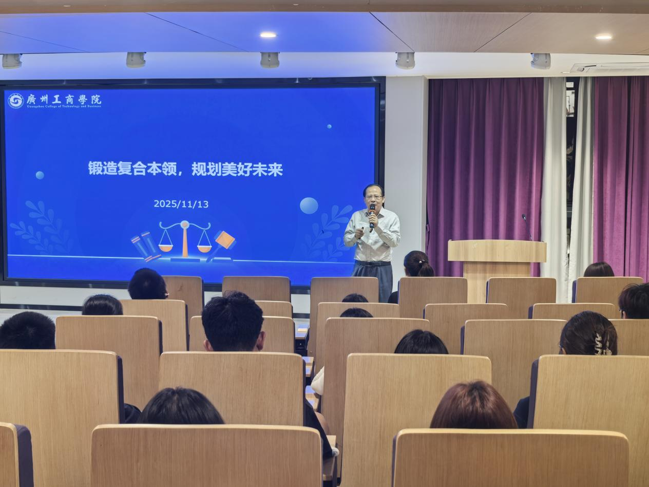 随后,辅修办公室钟院生老师为同学们带来了精彩的“开学第一课”。他以《锻造复合本领,规划美好未来》为题从“经济新常态下的机遇与挑战”切入,深刻分析了时代对复合型人才的迫切需求;并通过解析埃隆·马斯克、宇树科技王兴兴等跨界成功者的知识融合之道,以及kaiyun2025届毕业生刘瑾瑜同学凭借“商务英语+国际经济与贸易”的复合背景成功创业的鲜活案例,强调了打破学科壁垒、进行知识整合的重要性。他还为同学们详细梳理了兼顾主修与辅修的科学方法,提供了具体的时间管理与目标规划行动建议,为同学们即将开始的辅修学习绘制了清晰的“导航图”。