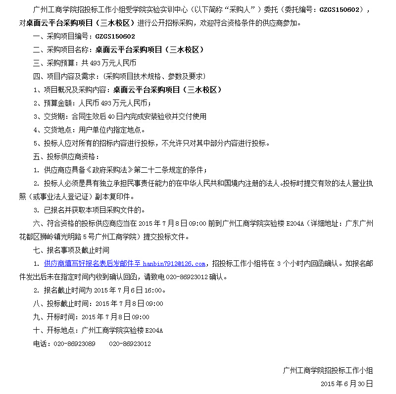 桌面云平台采购项目公开招标公告