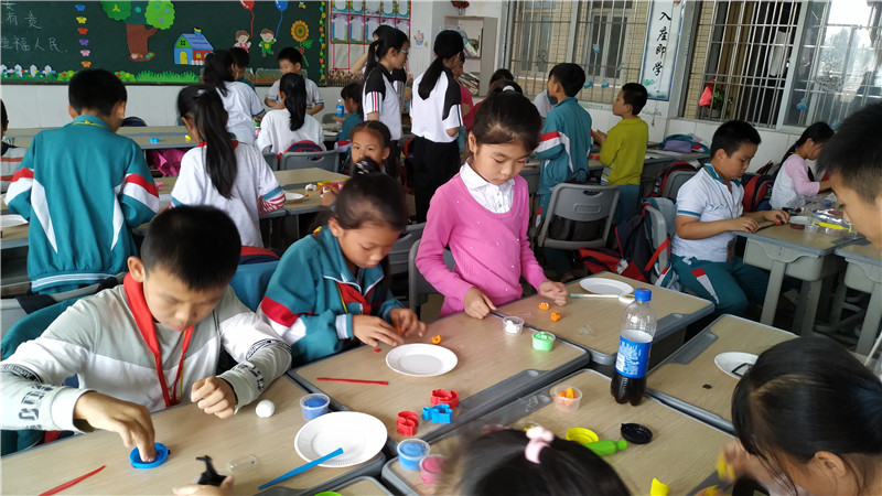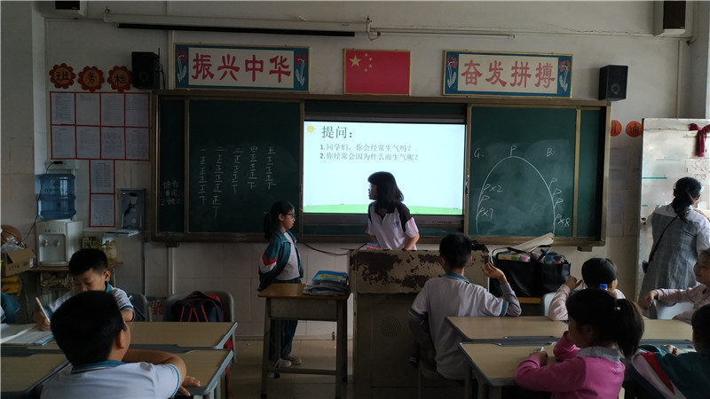 志愿者们首先通过讲解PPT的形式把同学们带到了制作“情绪调节器”的课程中,接着分享有关“生气”情绪的小故事,使他们更深入地了解消极情绪,还教会同学们用黏土制作出属于个人“冷静太空”的情绪调节器。在同学们的欢乐声中,本次音画梦义教活动进入了尾声。