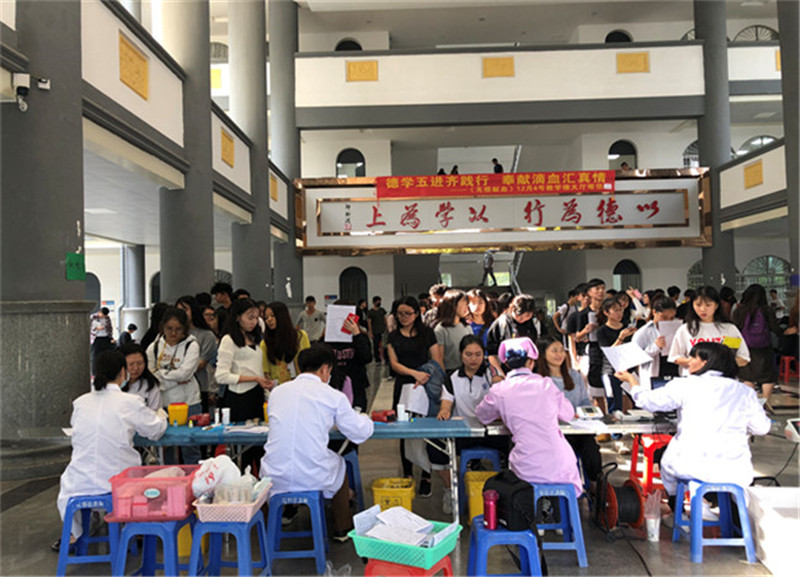 【本网讯】12月4日,我院花都校区院学生会青年志愿者行动指导中心联合花都血站在我院花都校区教学楼大厅开展了无偿献血活动。