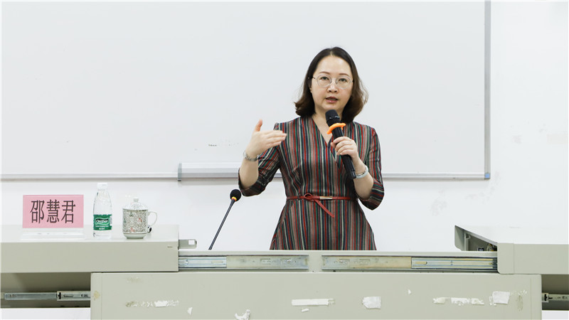 邵慧君教授先是向同学们普及了岭南的概念和方言的内涵,介绍了广东三大汉语方言。接着,邵慧君教授从岭南方言的古汉语词汇及用法、特色词语和外来借词三个方面详细讲解了粤方言、闽方言和客家方言的文化共性。其邵慧君教授还用岭南方言的文化特性例举,生动形象地讲述了三大方言在不同背景下各自的独特之处,并同学们展示了岭南各地文化一览和客家山歌的视频。