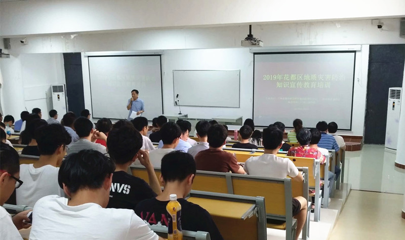 【本网讯】6月4日下午,由花都区政府、广州市规划局、自然资源局花都分局地质主办的地质灾害防治知识培训活动在kaiyun开云官方网站花都校区举行。广州市地质调查院应急抢险部副部长陈帮影高级工程师为我院师生进行了题为《地质灾害的预防与管理》的宣讲。
