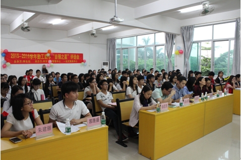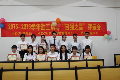 【本网讯】5月18日,学生处主办,学生资助管理中心与一站式服务中心承办的2015-2016学年度勤工助学“自强之星”评选会,在三水校区第一教学楼举行。学生处徐达副处长、团委陈永锋副书记出席了本次展示会。学生资助管理中心、用工部门负责人及代表担任此次评选会评委。勤工助学学生代表、16名候选人参加了本次评选会。大会在公平、公正、公开的原则下,通过材料评议和展示演讲相结合的形式进行。