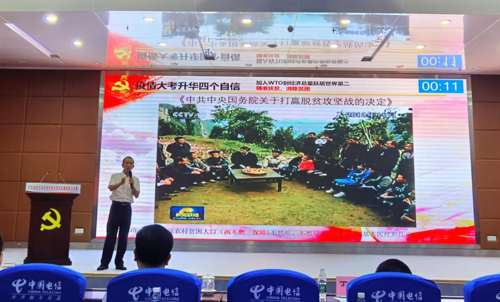 在决赛中,彭良军老师以《新冠战“疫”升华“四个自信”》为主题讲授了一堂生动、深刻的微党课。他从抗“疫”的国家战略、抗“疫”的身边故事、疫情大考中升华“四个自信”等三个方面进行阐述,深刻地揭示了这场战“疫”是对中国特色社会主义道路自信、理论自信、制度自信、文化自信的升华。在“创新工作案例”环节,彭老师以《支部书记+教研室主任双融双促成效显著》为题,从案例背景及意义、方案及具体实施、案例取得的成效、案例创新点剖析等四个方面,展示自己在支部工作中开展的创新典型案例。案例紧扣“党建业务双融双促”的主题,充分体现了党建引领业务,业务促进党建。