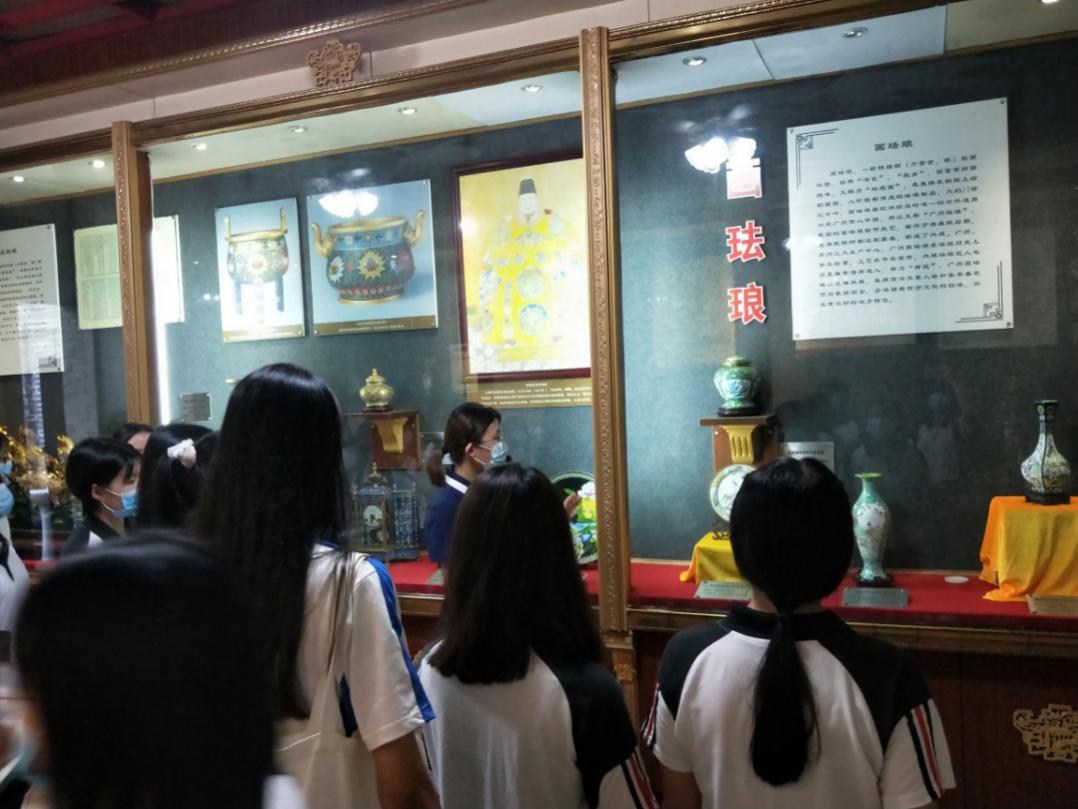 广州民俗博物馆的讲解员首先为师生们介绍了博物馆的最具有历史价值的文物,两座造型各异的牌坊,牌坊通体采用花岗岩条石砌成,坊上雕刻的人物、宫殿和各式花卉纹样、文字记载均用镂雕、浮雕、圆雕和阴刻等,手法夸张,工艺精细。随后引导大家参观了资政大夫祠、南山书院和亨之徐公祠三座古建筑,进一步了解这里的历史故事和文物背景。师生们重点参观了非遗展厅,对国家级非物质文化遗产——广州灰塑和省级非物质文化遗、广州珐琅的精湛技艺有了进一步的认识。
