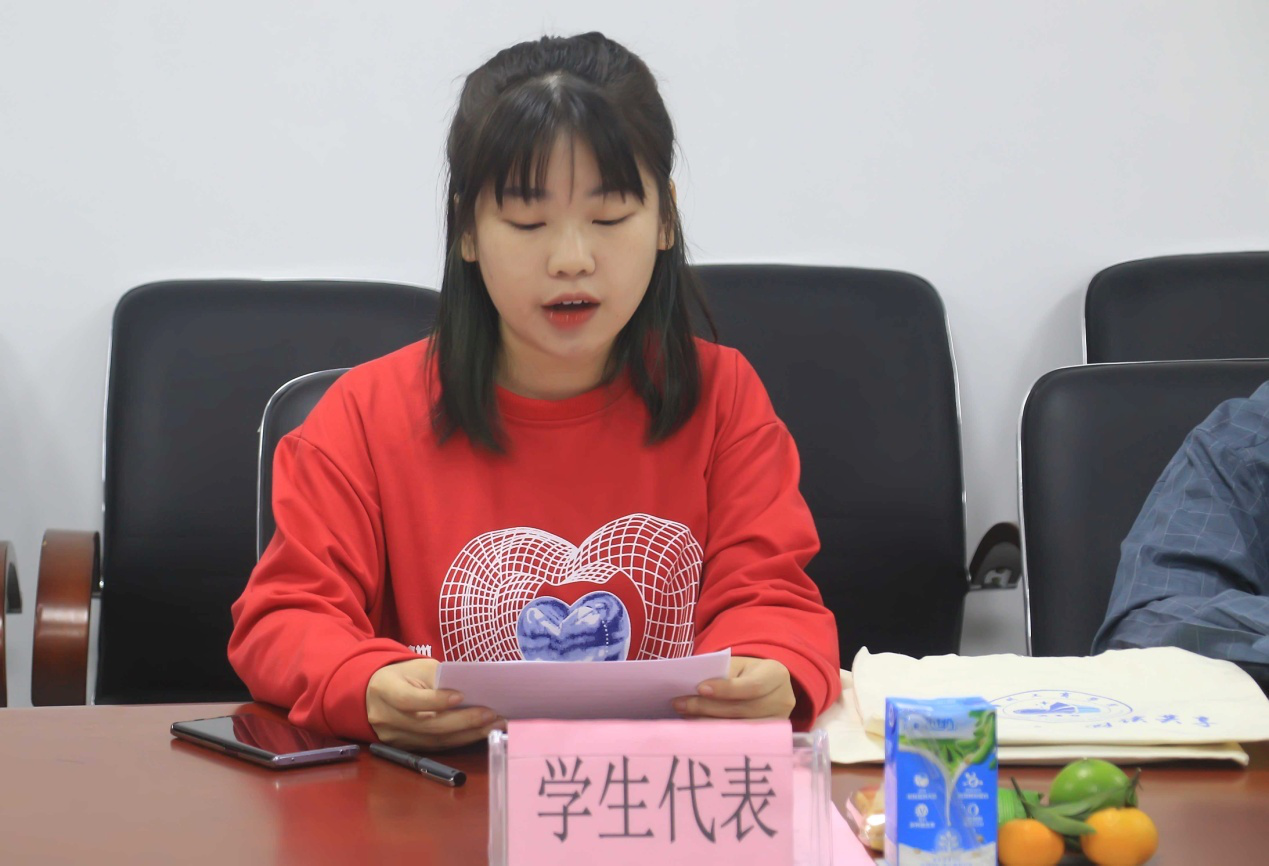 接着,物流系“守初心”党员志愿服务队学生代表谢微微发言,她对该队一年来的活动进行了汇报,通过参与志愿服务工作,不单为社会作出了一定的贡献,弘扬了新风气、新风尚,而且人生的价值也在志愿活动当中得到体现,满足了自我实现的最高需要。