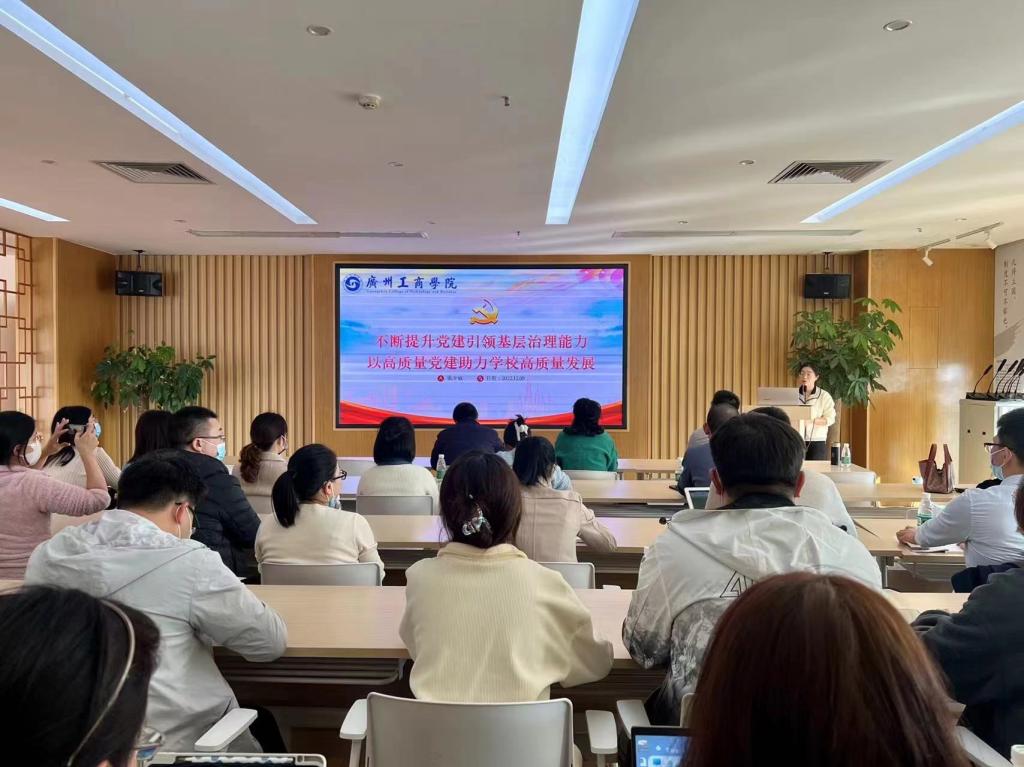 【本网讯】为全面贯彻党的二十大精神,进一步提升基层党务干部的履职能力,加强基层党组织规范化、制度化建设,12月9日下午,由马院党总支、管理学院党委、工学院党委、会计学院党委、张辉名师工作室联合主办的基层党务干部专题培训在三水校区图书馆六楼新时代党员讲习所举行。本次培训邀请了奚少敏老师主讲,题为“不断提升党建引领基层治理能力,以高质量党建助力学校高质量发展”。会议由马院党总支副书记、院长助理卢剑锋主持,会计学院党委书记、院长任道纹教授,管理学院党委书记、院长乔鹏亮教授出席本次活动,马院党总支、管理学院党委、工学院党委和会计学院党委全体党务干部,张辉名师工作室第二批学员均参加了本次培训。马院党总支副书记、院长助理卢剑锋主持。