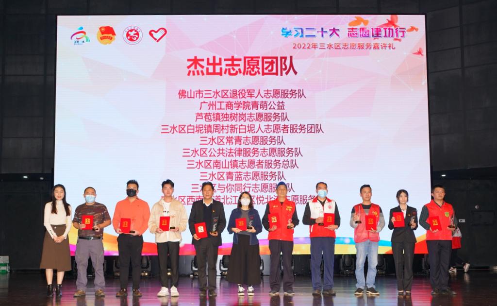 据悉,2022年度三水区志愿服务系列奖项由共青团佛山市三水区委员会、三水区志愿者联合会联合评选,旨在树立志愿服务工作中的优秀典型,增强社会公众对志愿服务的关注度和荣誉感,激励和动员社会大众踊跃投身社会公益事业,为佛山建设高质量“志愿之城”做出积极贡献。本次2022年度三水区志愿服务嘉许礼评选活动经评审小组的初审和复审后评选出多项奖项,其中2022年度三水区杰出志愿团队共10个。