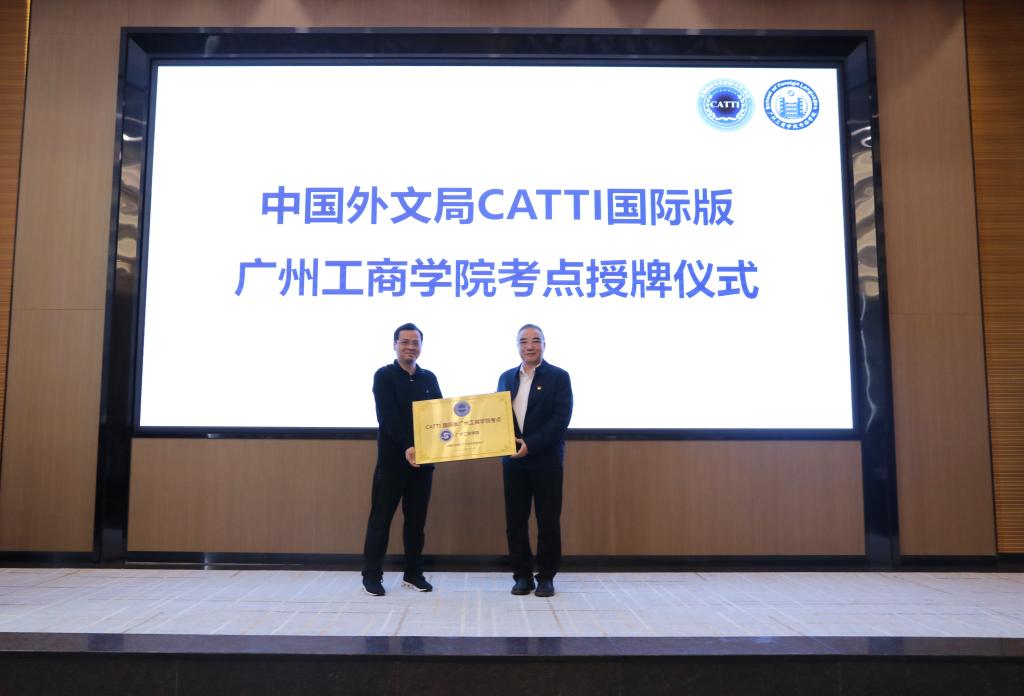 校党委书记张振超代表学校从江平主任手中接受“中国外文局CATTI国际版kaiyun开云官方网站考点”牌匾。