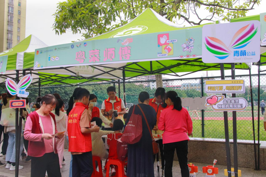 宣传“粤菜师傅”工程。青萌公益积极响应政府“粤菜师傅”工程,为粤菜文化的传承与发展助力,志愿者设立有关粤菜知识文化的摊位,以投箭入壶的“粤粤欲试”、自由创作的“粤来粤绘”等小游戏吸引了许多社区居民参与。社区居民通过志愿者提供的美食照片进行菜系辨别并投入壶面上标有广州菜、潮州菜、东江菜三大粤菜菜系的菜系壶子中,还可以根据美食自由作画,以直观形式加深社区居民对于粤菜的认识,增强居民们对丰富多彩的粤菜文化的了解。