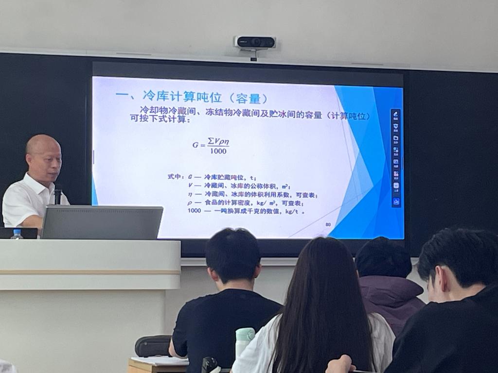 谢如鹤教授本次讲授了冷库管理和冷链运输两部分内容。谢教授精心设计了学生汇报、问题引出、内容讲授、企业高管随堂分享和专题分享等环节,并结合历年冷链运输相关科研研究成果开展课程内容讲授。