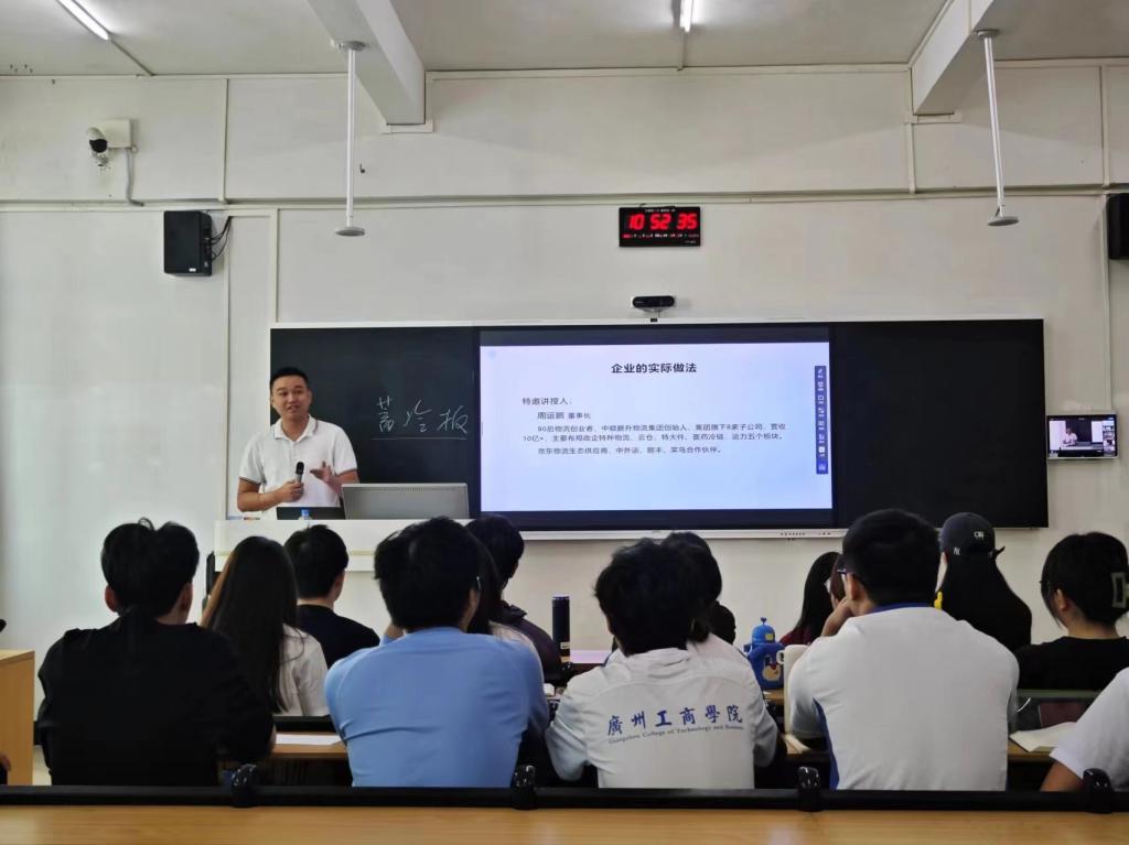 在谢教授的讲课过程中,周运鹏董事长应邀分享了他对预制菜行业发展前景的见解,并就课程引出的企业在进行冷链运输选择方式时的实际做法、如何成为冷链业务承运人、企业现有的冷链运输工具类型等问题进行了多次分享。
