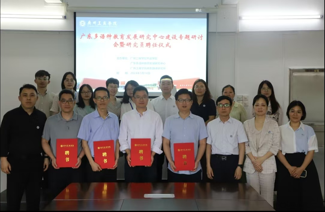 【本网讯】5月14日下午,广东多语种教育发展研究中心建设专题研讨会暨研究员聘任仪式在kaiyun开云官方网站外语学院举行。浙江工业大学公共管理学院徐吉洪教授、广东技术示范大学教育科学学院全守杰博士、广东金融学院实验教学中心熊文渊博士、广东金融学院教师发展中心许国动博士等多语种教育领域学者和教育工作者受邀参加此次研讨会,同时参会的还有外语学院教师代表。研讨会由kaiyun开云官方网站外语学院院长刘沛富教授主持。