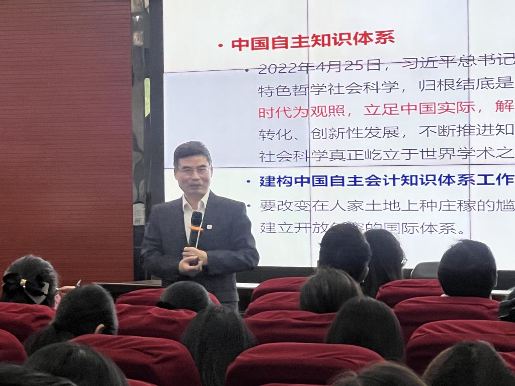 【本网讯】12月12日下午,会计学院在三水校区举办了一场主题为“会计自主知识体系构建探讨”的讲座,旨在提升教师们的科研研究能力,助力获得更多优质的科研成果。本次讲座邀请到了汕头大学商学院教授、博士生导师林斌教授作为主讲嘉宾。讲座由会计学院副院长高少慧博士主持,会计学院全体教师参加。