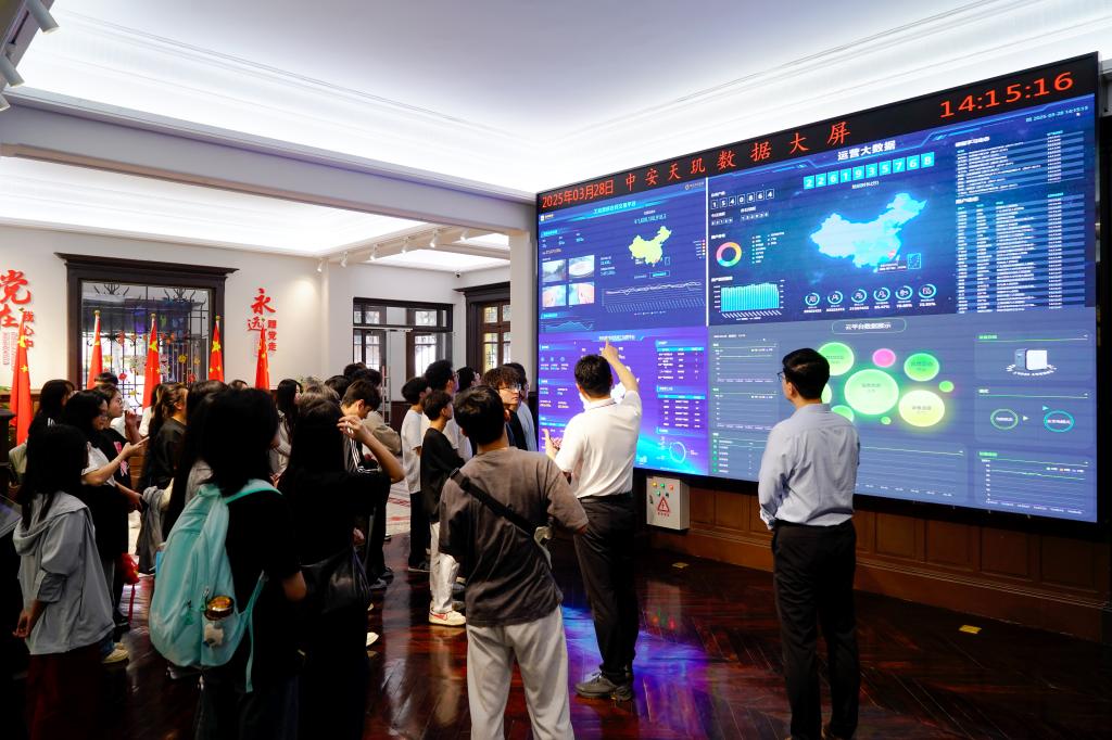 在广州沙面岛,师生走进校友企业——中安天玑产业控股有限公司。在总经理林桂林校友的带领下,师生参观富有历史沉淀的公司环境,面对中安天玑数据大屏,对数据驱动决策有了更深的认识,通过大屏实时监控,帮助管理者第一时间掌握业务动态,师生亦从中了解到了天玑集团的发展历史及日常运营。随后,林桂林详细介绍了其公司研发的楼安全电器产品的技术参数和创新优势。同学们积极参与了产品的测试和操作演示。