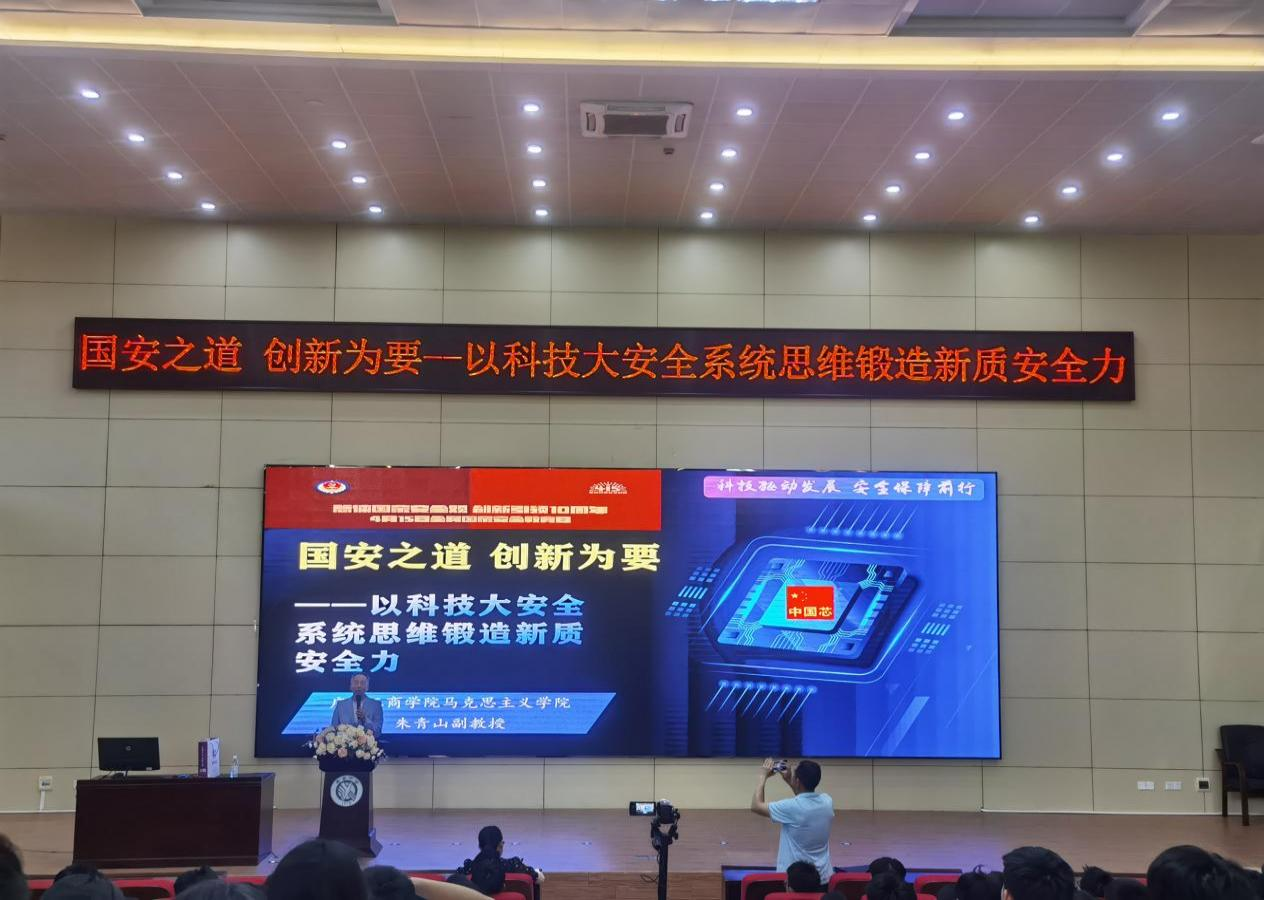 朱青山以《国安之道创新为要——以科技大安全系统思维锻造新质安全力》为题,结合前沿技术工具、跨学科理念与真实案例,系统阐释科技安全的国家战略意义、深刻内涵、风险挑战及维护路径,采用基于问题链、情景链、延伸链的启发式、案例式、互动式等教学方法,精选两会等最新时政科技热点及青年先锋案例,激发青少年对共同守护国家安全特别是科技安全的责任感与使命感。