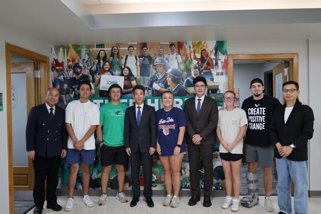 交流期间,陈武董事、黄喆诚书记一行还参观了美国东北州立大学的校园,深入了解学校的教学设施与学习环境。美国东北州立大学的校园环境优雅,学术氛围浓厚。作为一所历史悠久的综合性大学,学校注重学生全面发展,融合多元文化与创新理念,营造开放、包容、协作的育人环境。依托现代化的教学设施与高水平的师资队伍,学校构建起涵盖文、理、工、商等领域的优质课程体系,强化理论与实践结合,能够为学生提供优质的学习体验。
