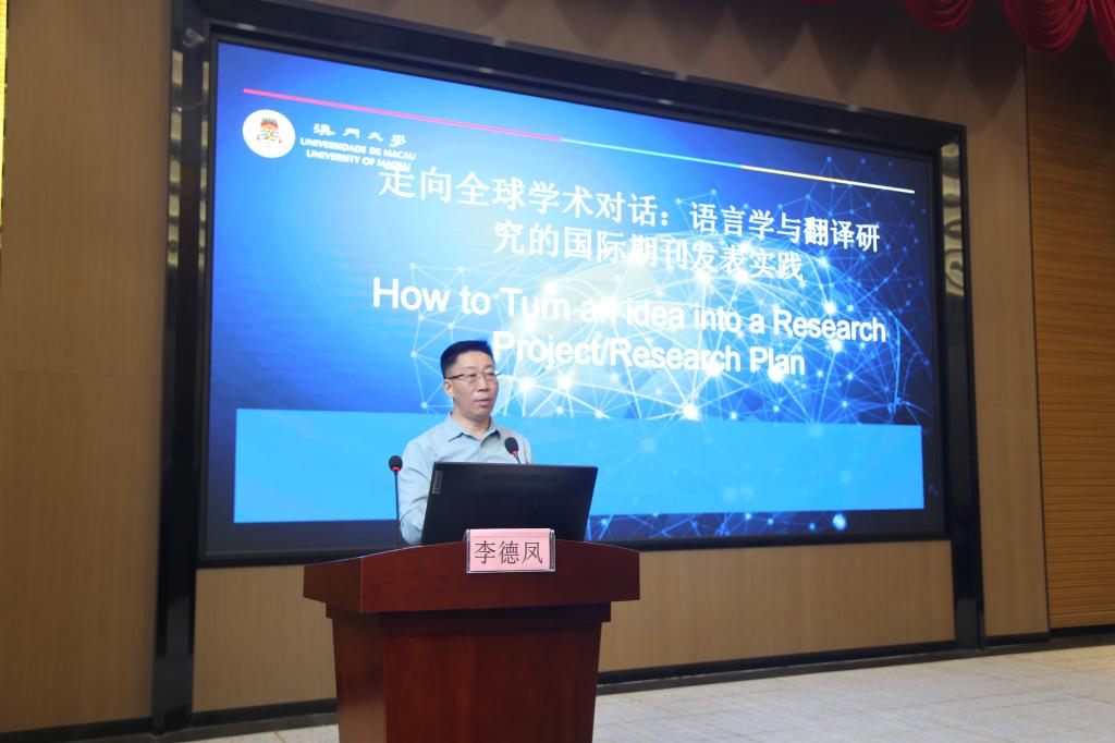 李德凤是欧洲科学院院士、澳门大学翻译学特聘教授(Distinguished Professor),人文学院副院长,博士生导师,博士后合作导师。在讲座中,李德凤教授深入探讨了创作和发表高水平论文的方法和注意事项。李教授以高水平论文选题为切入点,强调以问题驱动为导向的选题方法。其次,他从方法论、计划可行性、具体研究方案几个方面入手,结合了在SSCI上发表的语言学和翻译类高水平研究案例,深入浅出地向在场教师讲解了高水平论文写作的注意事项;最后李教授强调了SSCI论文发表的途径、方法与技巧等。