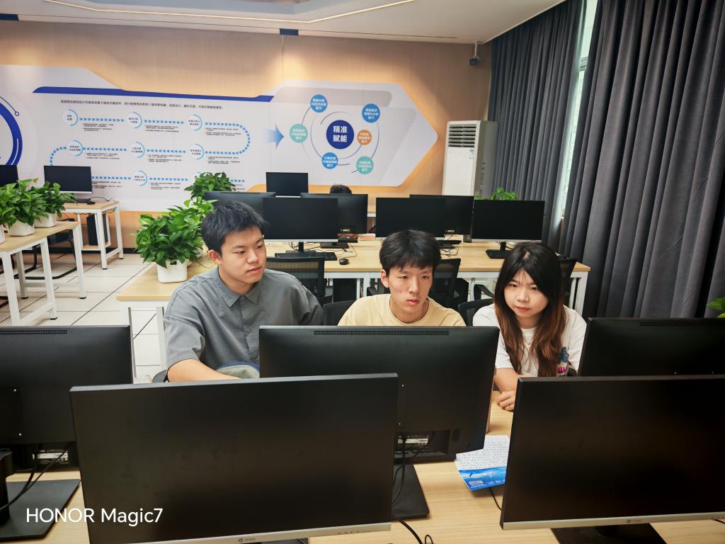 数智沙盘赛道的“啊对对对”队则由郑博翀、肖睿斌与吴梦宁三位成员构成。他们熟练掌握沙盘平台逻辑,能够在复杂系统模型中快速提取核心数据并作出预测判断。团队通过构建全流程经营模拟路径,并在多次模拟对局中提出创新性调整策略,充分体现出较强的逻辑推演能力和数智化管理意识。