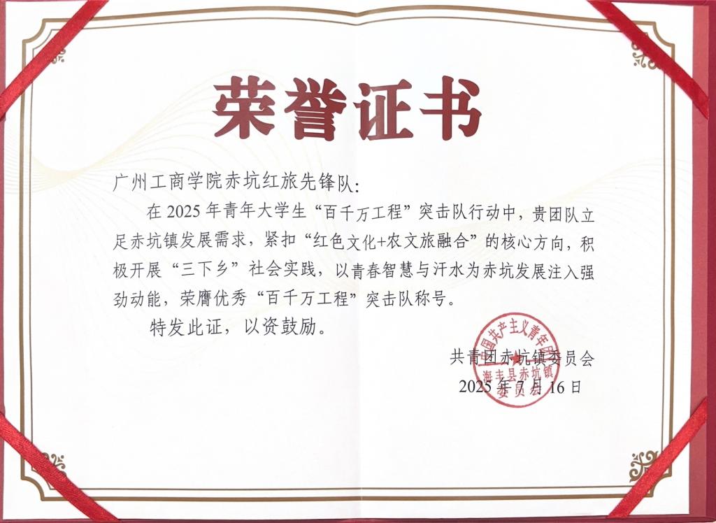 实践中,在外语学院师生的积极推动与学校多部门的协同支持下,团队通过“视觉+听觉”多维传播矩阵扩大影响力,组织拍摄宣传片、创作《赤坑谣》歌曲,助力赤坑品牌文化出圈。此次实践获赤坑镇政府授予2025年优秀“百千万工程”突击队称号,充分彰显了外语学院在学校“地方所需”与“高校所能”统筹框架下,以实干精神服务乡村振兴的教育使命与责任担当。据悉,外语学院将在学校的持续支持下深化“百千万工程”实践,依托学科优势与学校资源平台,推动外语人才培养与地方发展精准对接,带领师生争当服务乡村振兴的先锋队,为地方经济社会高质量发展贡献更多外语智慧与青春力量。